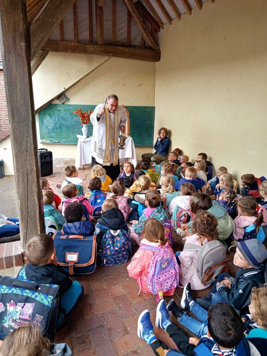 Chaque début d'année commence par la traditionnelle bénédiction des cartables. Au cours de cette célébration, tous les nouveaux élèves sont accueillis. Puis l'Abbé Monnier a béni les écoliers et leurs cartables afin de confier cette nouvelle année sous la protection de Saint Joseph, le Saint Patron de notre école.