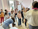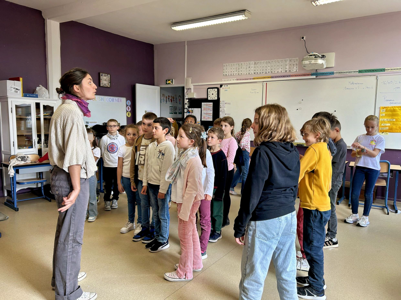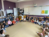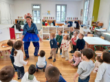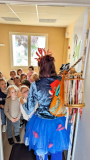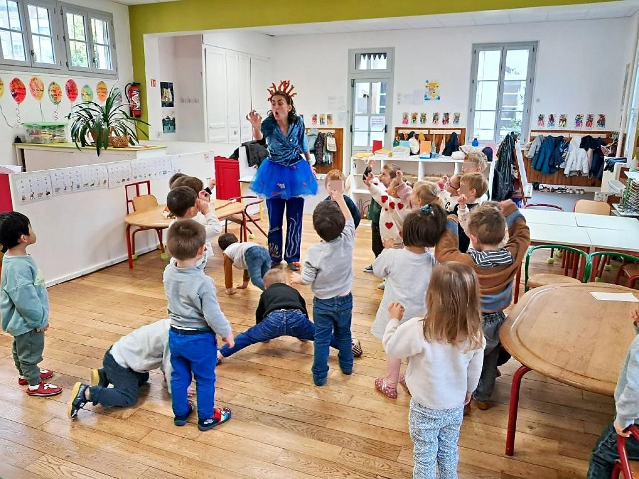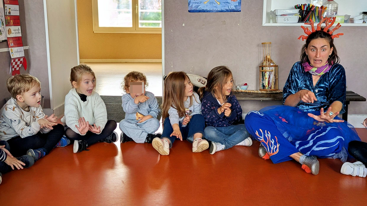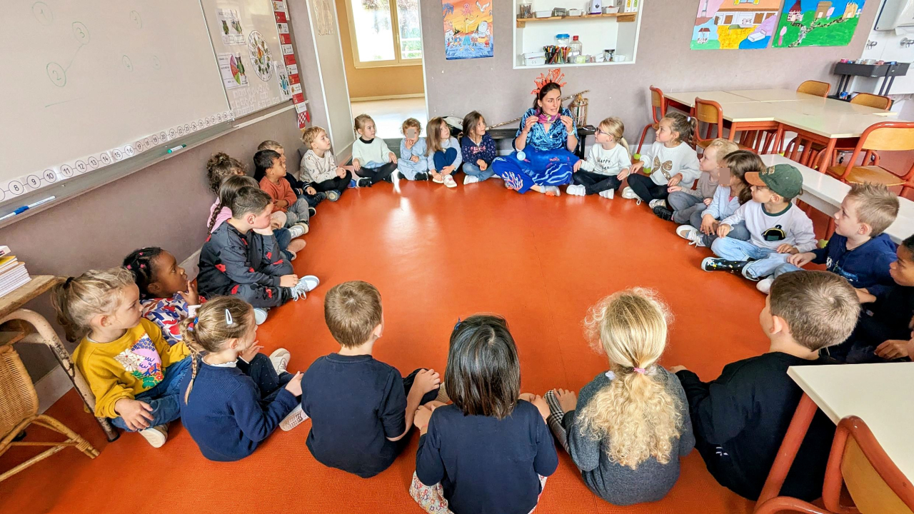 Cette année, c'est Lucile Houdy qui intervient à l'école. Pour les classes maternelles, elle se costume et devient Coqui Yah! Elle a conquis les élèves dès la première séance.