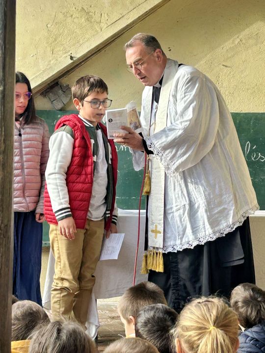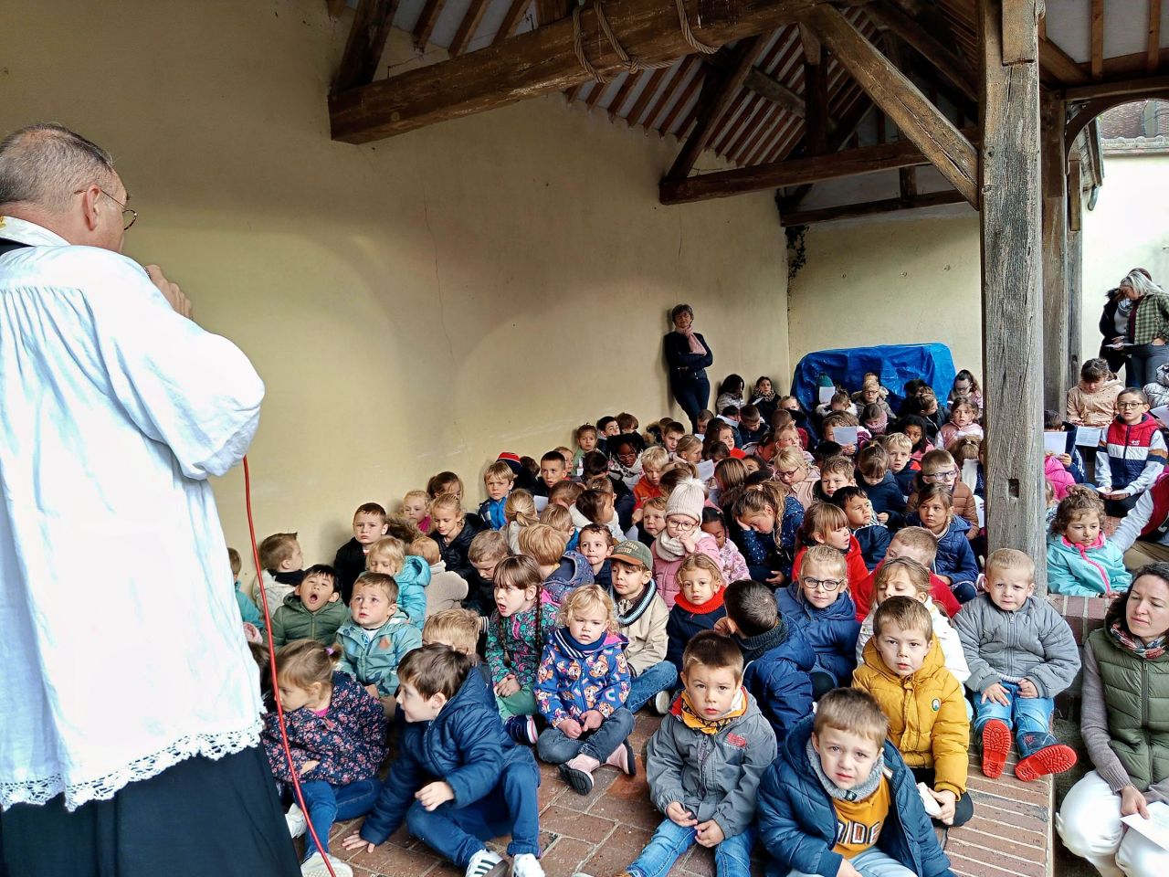 Ce jeudi 16 octobre, les trois classes élémentaires ont participé à des ateliers sur les Saints fêtés dans la religion catholique. Ensuite, toutes les classes se sont retrouvées pour une célébration autour de l'abbé Monnier.