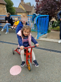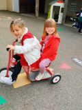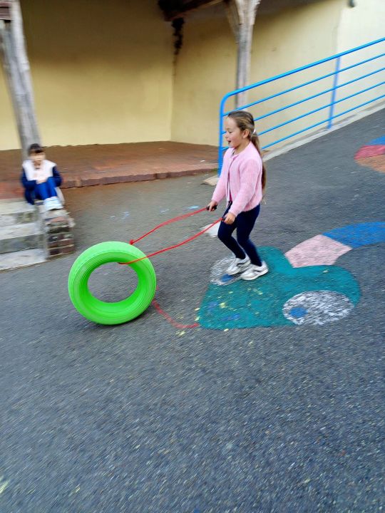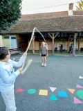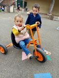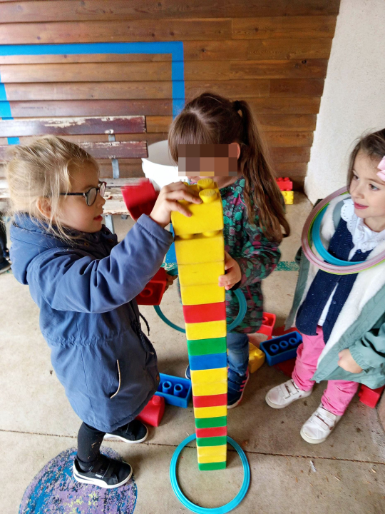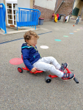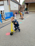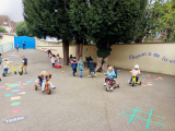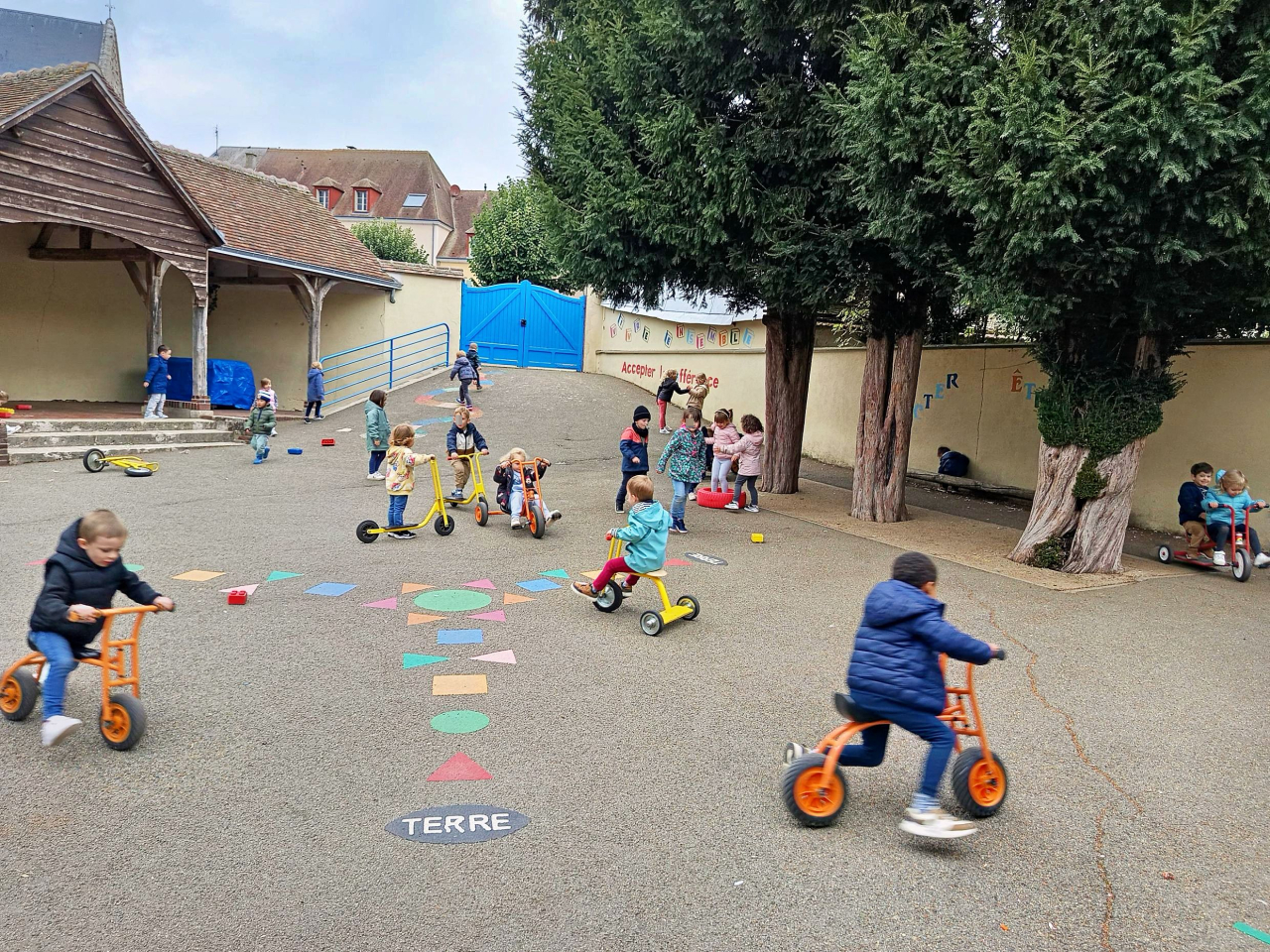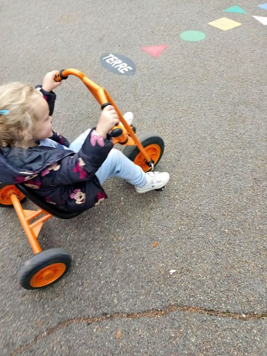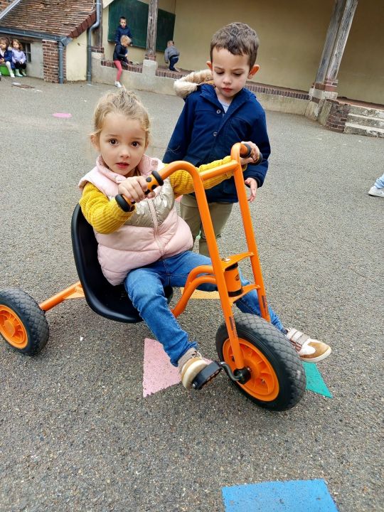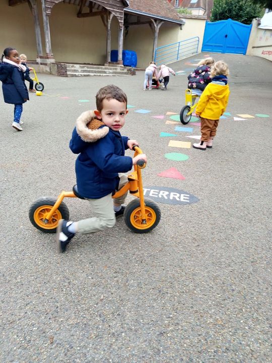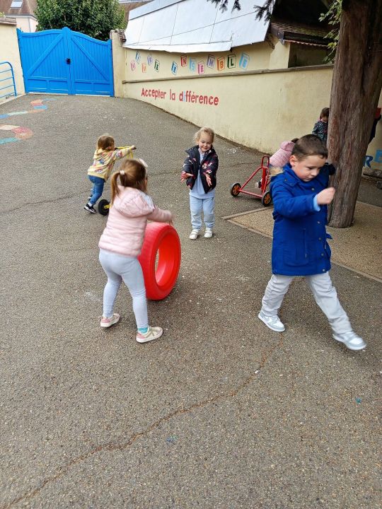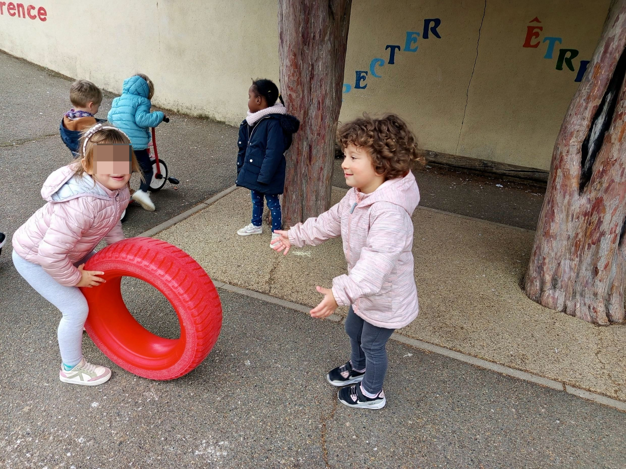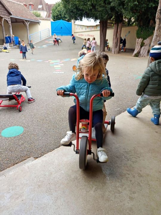 Quel plaisir quand sonne la récréation! Entre les pneus à faire rouler, les ballons, les cordes à sauter, les vélos et trottinettes, le panier de basket, le tableau pour dessiner, les légos géants et la maisonnette, il y en a pour tous les goûts!